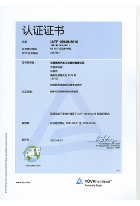 IATF 16949 認證證書